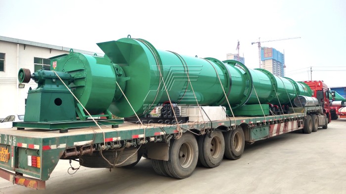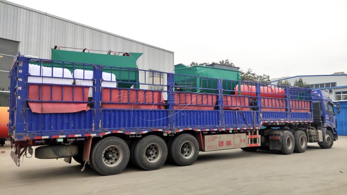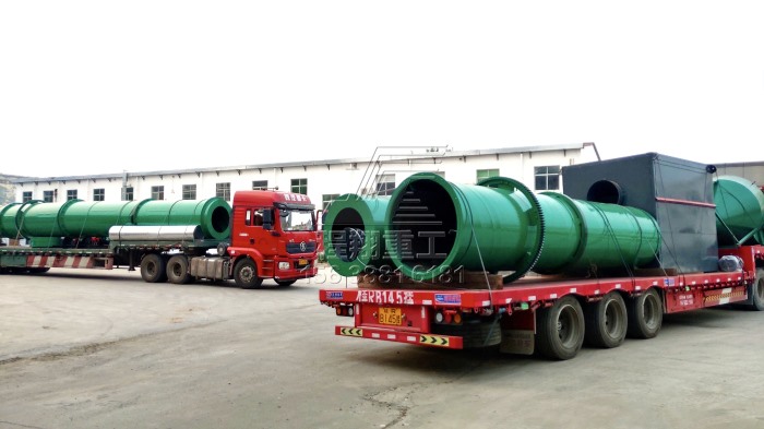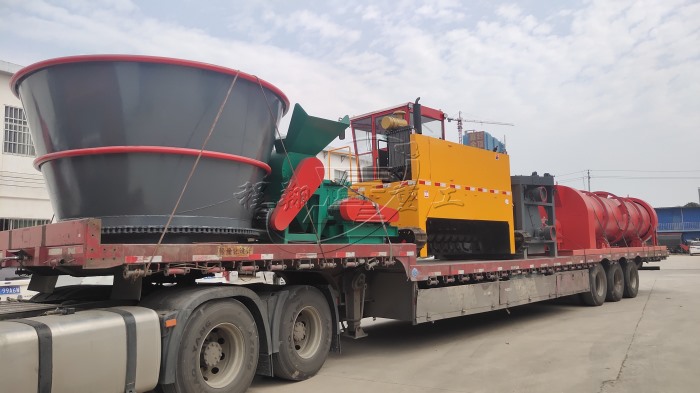 由于該豬糞秸稈有機肥料生產(chǎn)線產(chǎn)量較大,因此分為多車裝置運輸。主要的豬糞加工設(shè)備有:大型秸稈粉碎機、履帶式翻堆機、臥式攪拌機、新型三合一造粒機、不同型號的滾筒篩分機以及多個型號的烘干冷卻設(shè)備。