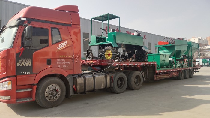 全自動(dòng)有機(jī)肥生產(chǎn)設(shè)備年產(chǎn)1萬(wàn)噸,由于新疆地區(qū)面積廣闊環(huán)保要求不是很嚴(yán)格,因此我們?yōu)榭蛻籼峁┝艘苿?dòng)式翻拋設(shè)備,采用輪式翻堆機(jī)隨用隨開(kāi),設(shè)備成本也相對(duì)較低。一般顆粒造粒之后需要包膜改善產(chǎn)品外觀,這里由于客戶預(yù)算不夠,我們?yōu)榭蛻籼峁┝藞A盤(pán)代替包膜機(jī)使用,從而起到拋圓、包衣的作用。