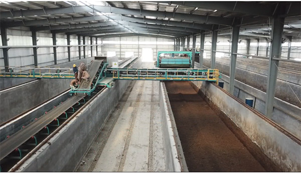 本次牛糞全套有機(jī)肥料設(shè)備生產(chǎn)工藝采用槽式好氧發(fā)酵,利用翻堆槽發(fā)酵既干凈又能最大化的利用有限的場(chǎng)地,增加糞便處理量。由于客戶(hù)對(duì)于顆粒有機(jī)質(zhì)含量以及NPK有特殊要求,因此我們?yōu)榭蛻?hù)專(zhuān)門(mén)定制了一臺(tái)三倉(cāng)的靜態(tài)配料系統(tǒng)。