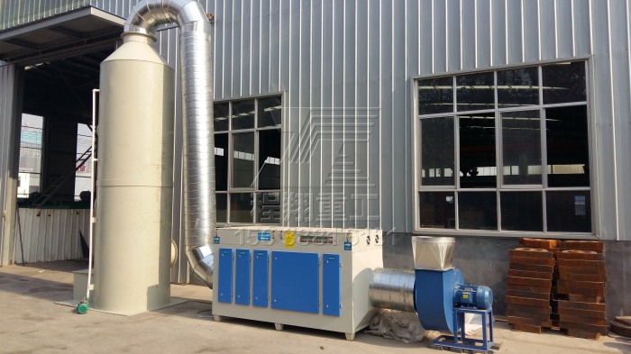 除臭系統(tǒng)的接口主要和外部的烘干機連著,除臭系統(tǒng)主要有噴淋塔(主要作用是防揚塵)、彎頭、引風(fēng)機/水泵等組成。