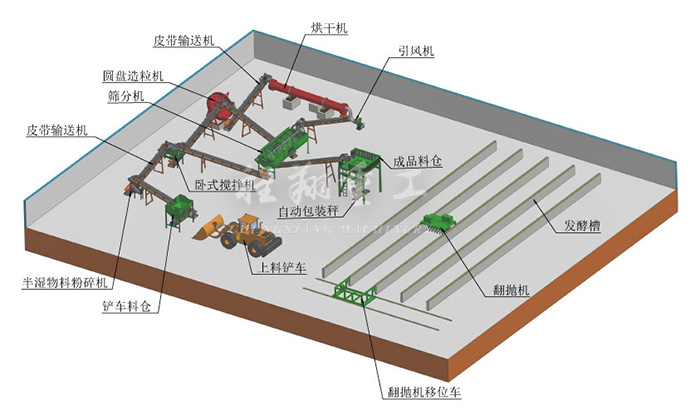 查看 > 13 2020/10本次發(fā)貨的設(shè)備是程翔重工是為江西某客戶定制的,簡單的年產(chǎn)1萬噸雞糞有機肥生產(chǎn)線,主要設(shè)備有:鏈?zhǔn)椒鬯闄C、滾筒篩分機、濕法攪齒造粒機、鏟車喂料倉以及自動包裝秤。改雞糞生產(chǎn)線的工作流程為:發(fā)酵——粉碎——攪拌——造粒——篩分——包裝運輸1.發(fā)酵是第一步,畜禽糞便含有大量病蟲卵,需要進