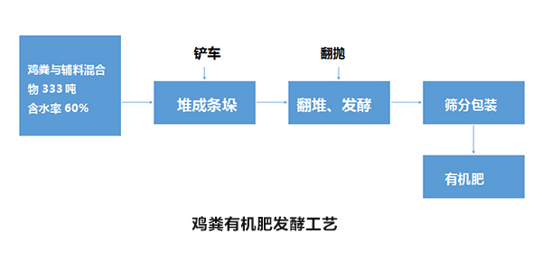 將攪拌好的雞糞、以及輔料堆砌在地面或者發(fā)酵槽中,配料堆成寬1.5米~2米、下0.8米~1米的長(zhǎng)條堆,撒上發(fā)酵菌劑除臭、升溫,或者可以采用將發(fā)酵菌劑與一些殼糠、粉渣等輔料,充分混合之后,再進(jìn)行好氧發(fā)酵堆造。切記:將配好的混雜料喂進(jìn)臥式攪拌機(jī)中舉行攪拌,攪拌一定要?jiǎng)?、要透,沒(méi)有留死塊。堆造2~3天后料堆的溫度可達(dá)60攝氏度~80攝氏度,殺死大腸桿菌、蟲(chóng)卵等病蟲(chóng)害;之后雞糞的臭味逐漸消除了;堆肥變得松散