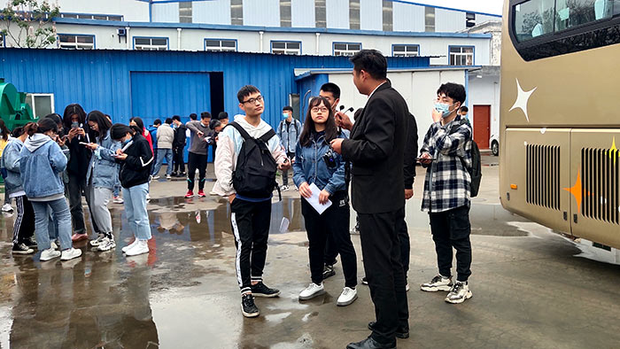 王經(jīng)理正在為同學(xué)們講解轉(zhuǎn)股造粒機(jī)的內(nèi)部構(gòu)造