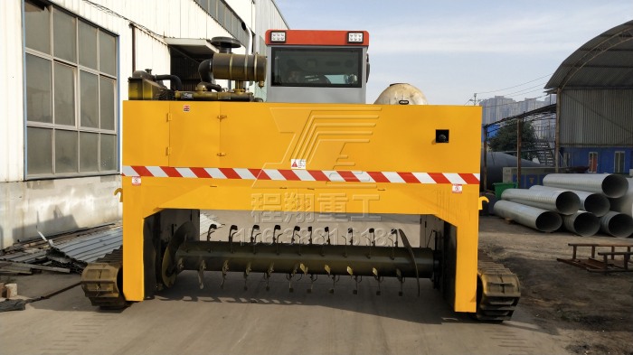 程翔重工研制的新款履帶型翻堆機(jī),帶照明設(shè)備,光照條件不好或者夜間都可進(jìn)行翻堆作業(yè)。