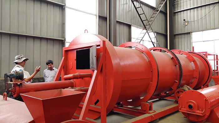 查看 > 20 2020/11由于該豬糞秸稈有機肥料生產(chǎn)線產(chǎn)量較大,因此分為多車裝置運輸。主要的豬糞加工設(shè)備有:大型秸稈粉碎機、履帶式翻堆機、臥式攪拌機、新型三合一造粒機、不同型號的滾筒篩分機以及多個型號的烘干冷卻設(shè)備。滾筒烘干設(shè)備風(fēng)頭以及風(fēng)機安置熱風(fēng)爐以及冷卻設(shè)備多個烘干冷卻設(shè)備履帶式翻堆機以及大型秸稈粉碎機二次烘干設(shè)備滾筒篩分機以及鏟車喂料倉本次豬糞秸稈有機肥料生產(chǎn)線工藝設(shè)計流程為:利用大型秸稈粉碎機將稻草秸稈等粉碎均勻,