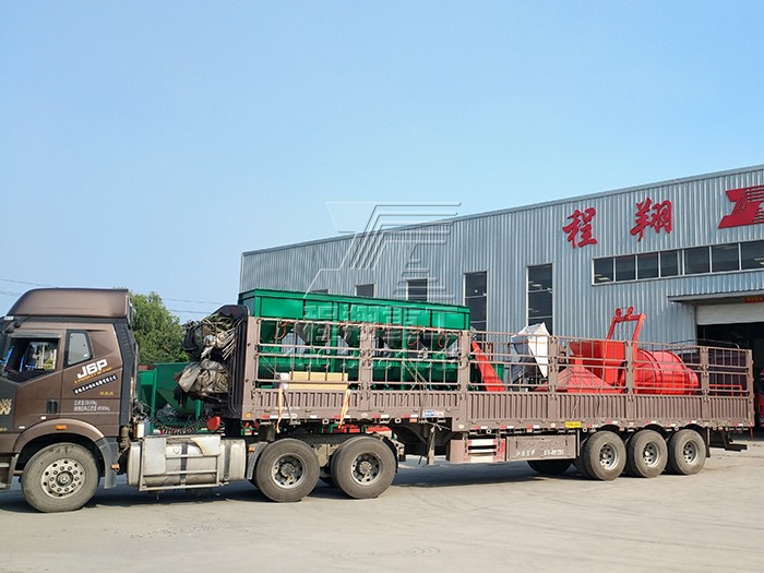 查看 > 20 2020/11由于該豬糞秸稈有機(jī)肥料生產(chǎn)線(xiàn)產(chǎn)量較大,因此分為多車(chē)裝置運(yùn)輸。主要的豬糞加工設(shè)備有:大型秸稈粉碎機(jī)、履帶式翻堆機(jī)、臥式攪拌機(jī)、新型三合一造粒機(jī)、不同型號(hào)的滾筒篩分機(jī)以及多個(gè)型號(hào)的烘干冷卻設(shè)備。滾筒烘干設(shè)備風(fēng)頭以及風(fēng)機(jī)安置熱風(fēng)爐以及冷卻設(shè)備多個(gè)烘干冷卻設(shè)備履帶式翻堆機(jī)以及大型秸稈粉碎機(jī)二次烘干設(shè)備滾筒篩分機(jī)以及鏟車(chē)喂料倉(cāng)本次豬糞秸稈有機(jī)肥料生產(chǎn)線(xiàn)工藝設(shè)計(jì)流程為:利用大型秸稈粉碎機(jī)將稻草秸稈等粉碎均勻,